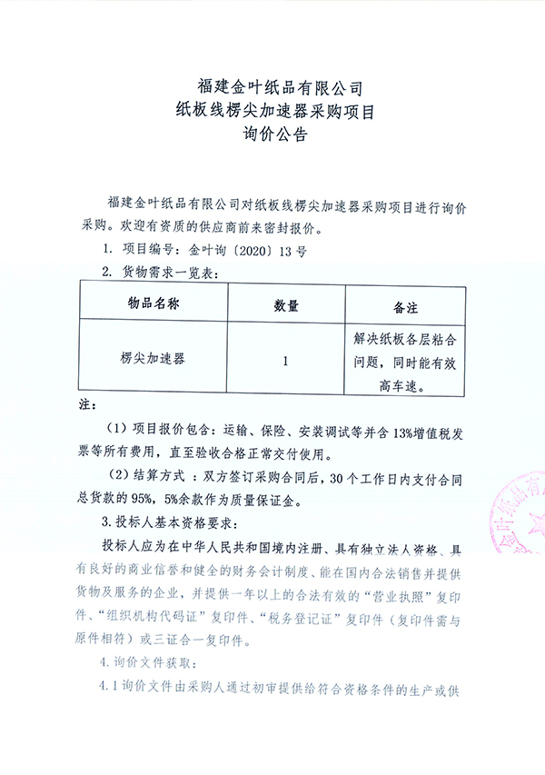 紙板線楞尖加速器采購項目詢價公告