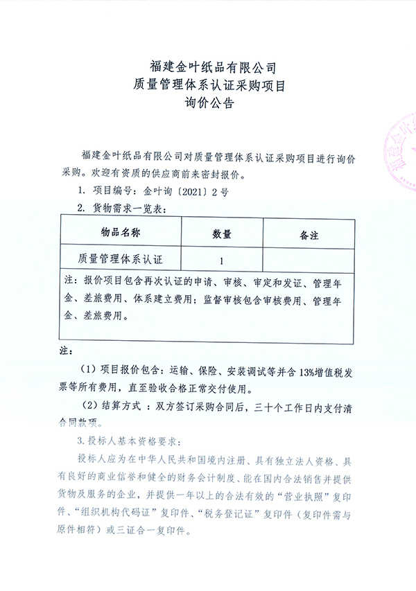 質(zhì)量管理體系認(rèn)證采購(gòu)項(xiàng)目詢價(jià)公告
