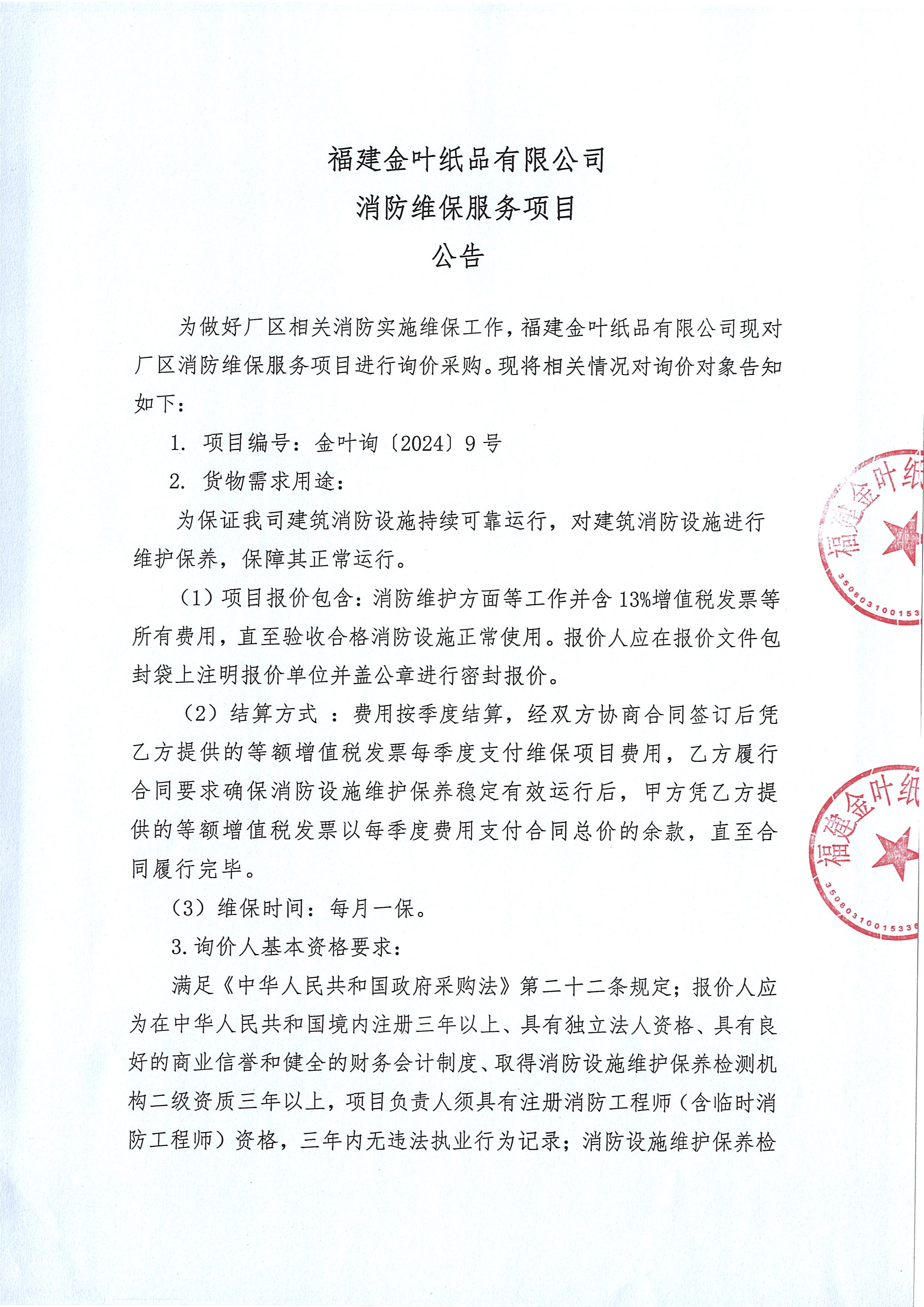 消防維保服務詢價項目